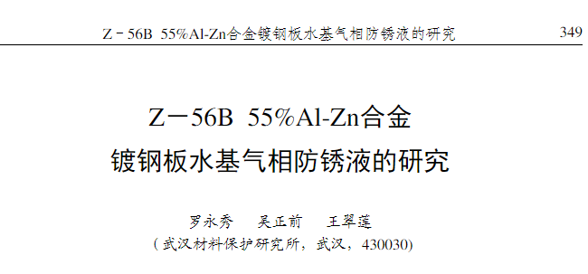 三位組織了合金鍍鋼板水基氣相防銹的研究