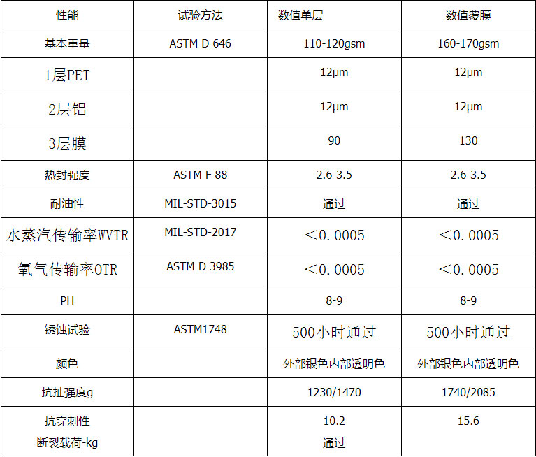 熱密封有利于防銹膜作為屏障限制以下物質(zhì)通過:固體、液體、半固體、氣體或能量形式如:紫外線;結(jié)構(gòu)首層是相對堅韌的有機(jī)聚合物雙向拉伸膜;第二層是金屬箔/涂層聚乙烯;第三層是堅韌的聚合物,如聚乙烯。